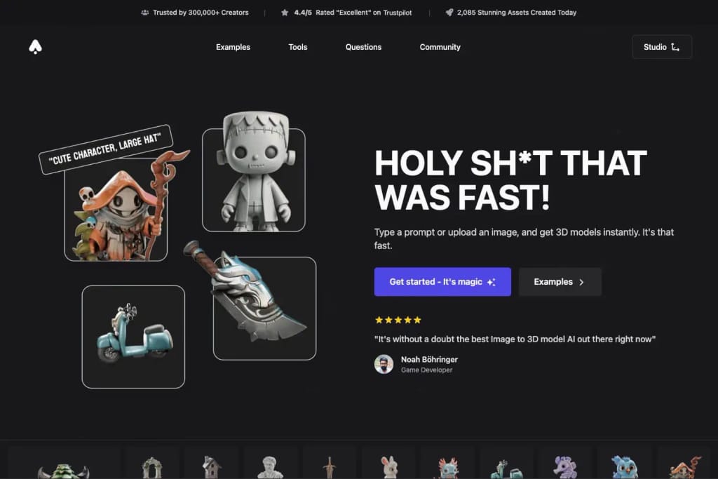 3DAI Studio lets you create production-ready 3D models from text or images in seconds. Type a prompt or upload a picture, and the platform generates a textured, export-ready model with clean topology.
