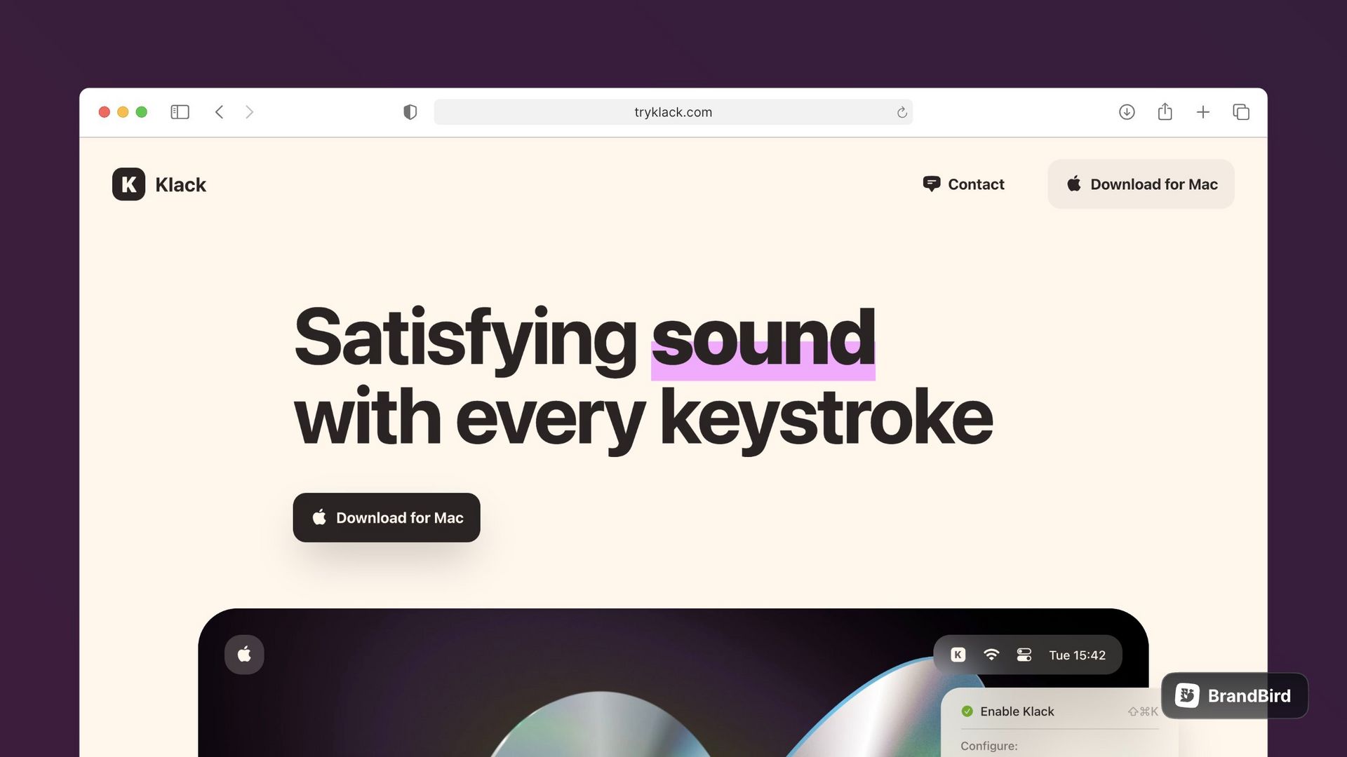 Klack is a Mac-only app that adds high-fidelity keyboard sounds, spatial audio, instant feedback, custom switch options, and fast native performance.