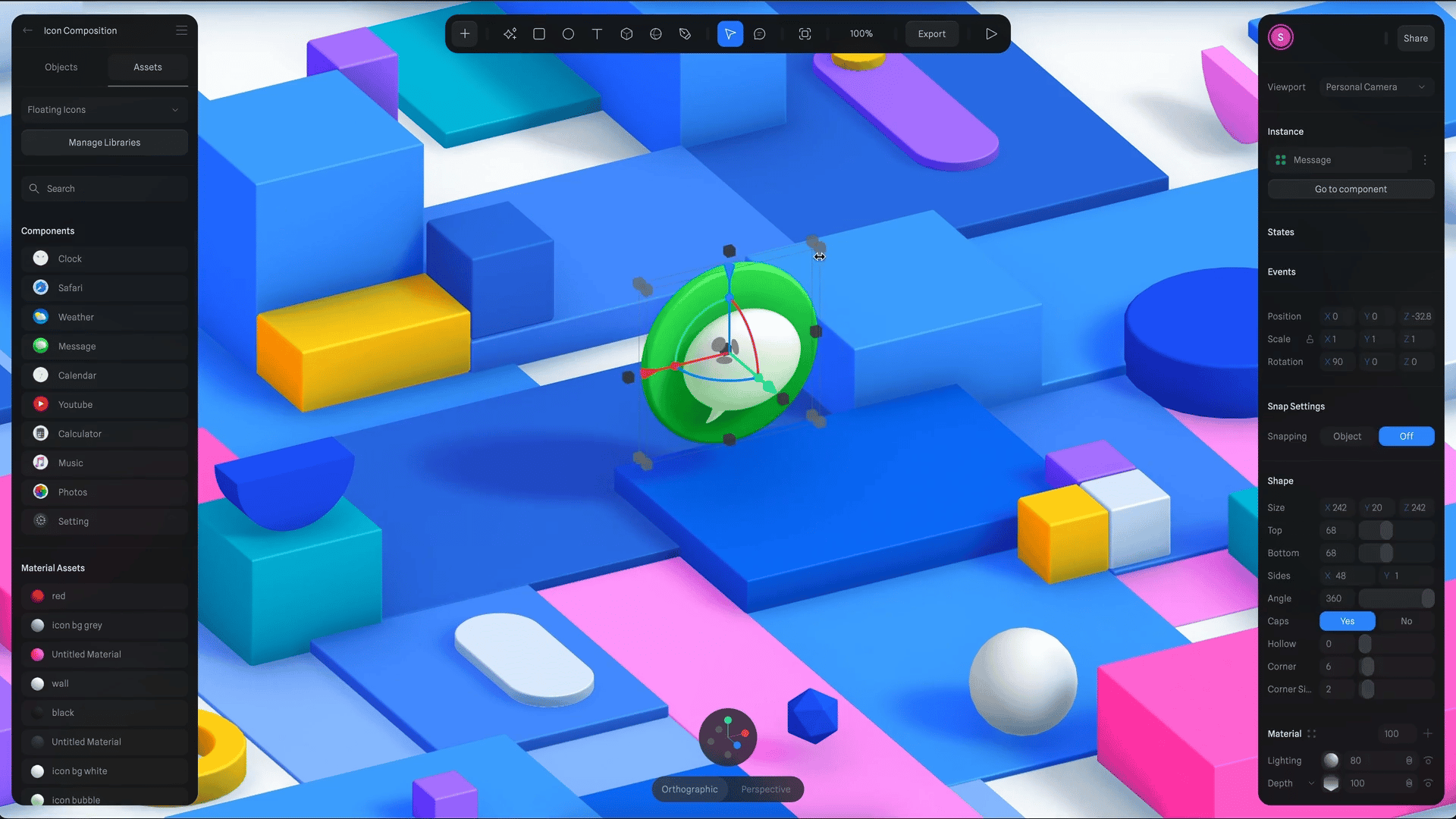 You can import 3D files, customize materials, embed interactive scenes, and store assets in a personal library.