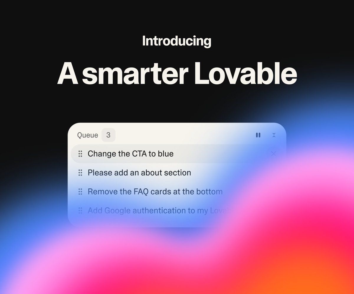 Lovable can now plan features before writing code, queue multiple prompts while it works, and run automated browser tests to catch issues early. The result is faster builds with fewer bugs. The update also adds one-prompt Google authentication, removing setup friction for new apps.