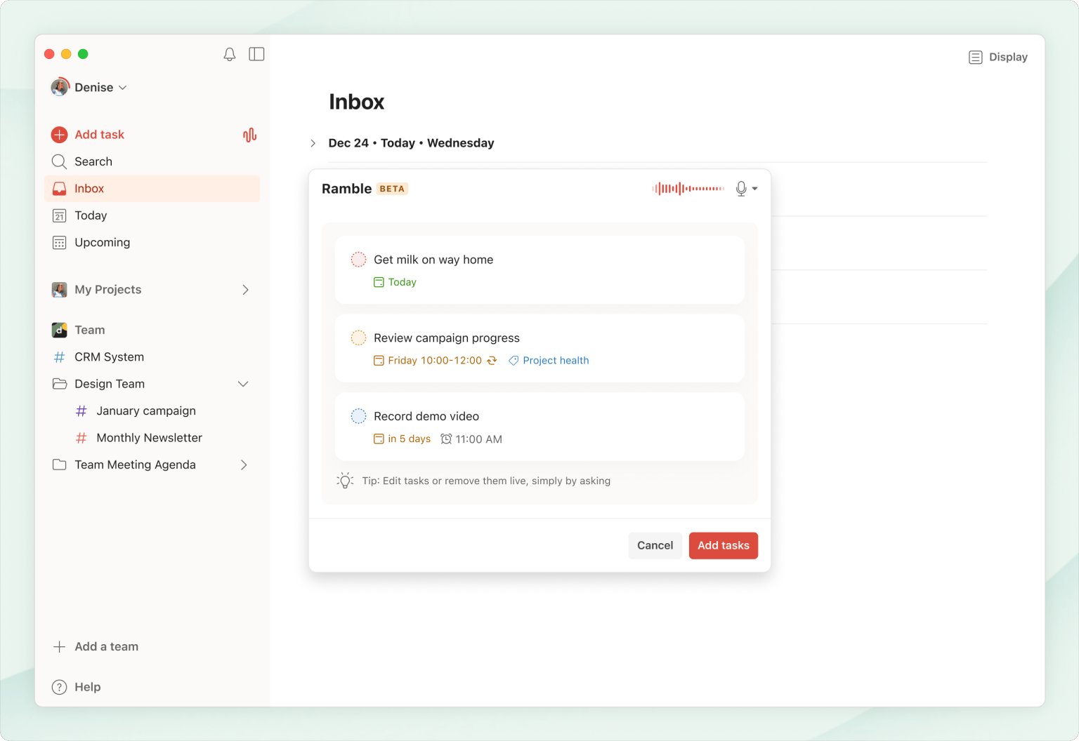 Todoist has launched Ramble, a new AI feature that lets users add tasks by speaking.