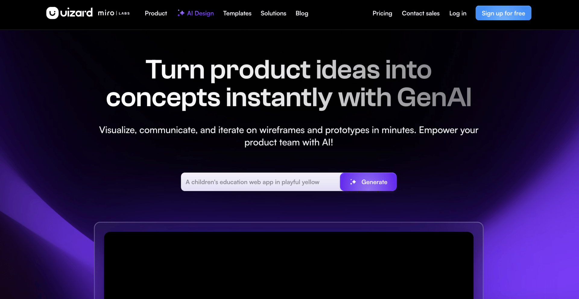 Uizard is a web-based UI design tool built around AI speed. It turns plain English prompts into multi-screen, clickable prototypes, converts screenshots or hand-drawn sketches into editable mockups, and applies ready-made themes instantly.