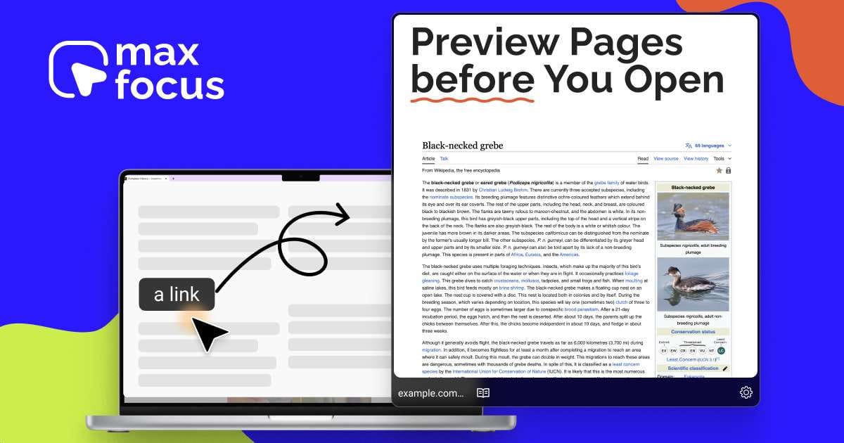MaxFocus lets you preview links without opening new tabs. You hover, click, or use shortcuts to peek at pages, videos, and articles while staying on the same screen.