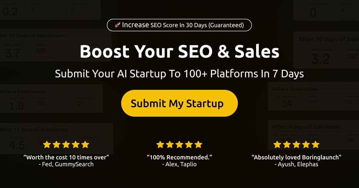 BoringLaunch manually submits your startup to 100+ high-authority platforms in about a week. You get foundational backlinks, early users, and a quick domain rating lift without touching forms or chasing listings.